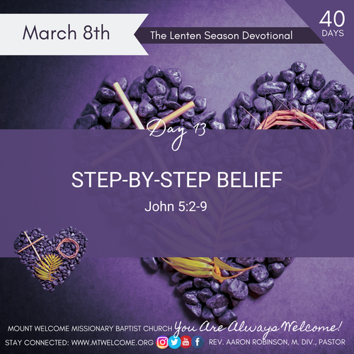 As we journey through this Lenten season, we must continue our personal relationship with God! We must believe that Jesus Christ is our savior and have faith by taking the first steps of obedience, repenting of sin, and turning our life over to his control and power to change our life.