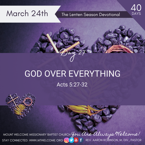 In Acts 5th chapter, Peter and the other apostles did not allow the council and the high priests to stop them from obeying God who is over everything. When the high priest questioned Peter, saying, “Did not we straightly command you that ye should not teach in this name? and, behold, ye have filled Jerusalem with your doctrine, and intend to bring this man's blood upon us?” Then Peter and the other apostles answered and said, “We ought to obey God rather than men.”