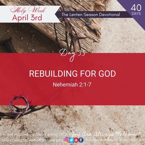 This week’s Lenten Devotional prayer focus: Acting for God. Lord, help me to be courageous enough to act for thee in all situations and circumstances. God help us to do our part for your kingdom.